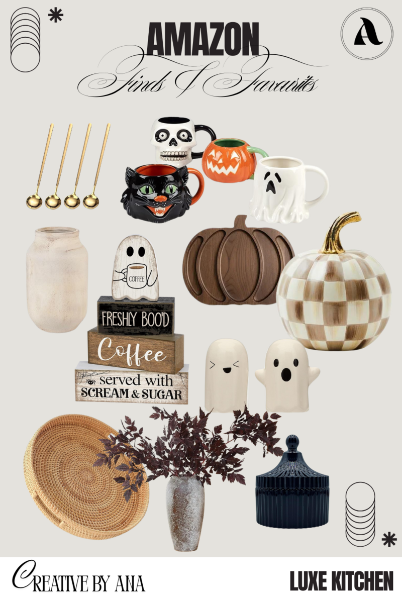 Set the scene for a stylishly spooky season with Faux Ramosa Leaves, Hand-Woven Round Rattan accents, and gold stir spoons that bring effortless charm to your coffee corner or dining setup. The Halloween Pumpkin Wooden Serving Platter adds a cozy autumn touch, making every sip and snack feel elevated.